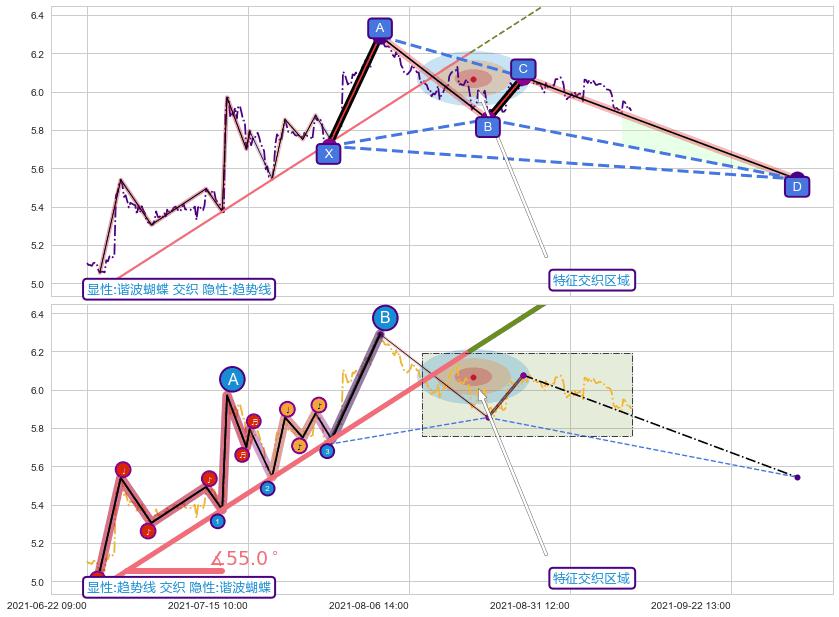 ➢ 谐波蝴蝶与趋势线信号事件周期长度级别相同,同周期信号事件