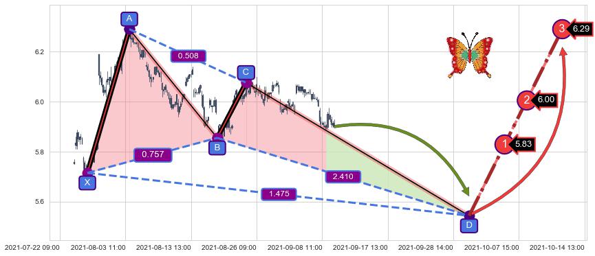 ➣ D点拟合预测价格5.54,距离最后交易收盘价格5.90相差 -6.04%