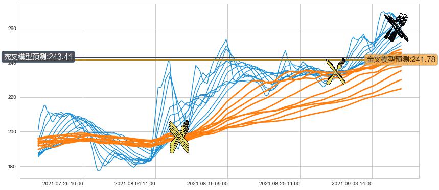 ➢ 40小时均线于(08-30 15:00: 234.91)形成【金叉】基于【金叉历史模型】预测金叉后最高波峰价格: 258.09, 金叉后最高价格270.60,已经上涨超出预测最高波峰价格, 预期回调