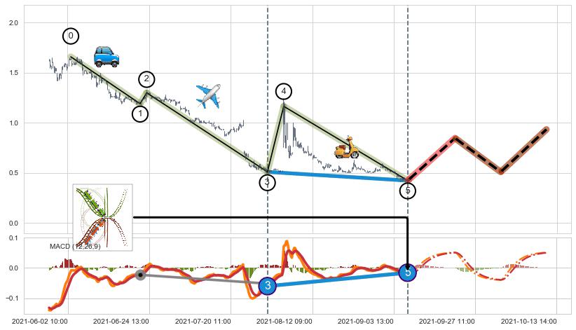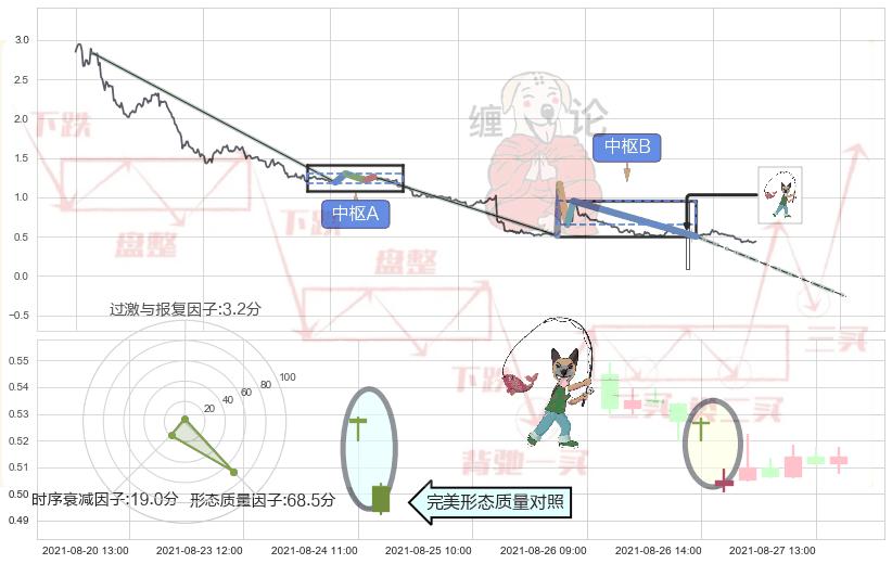 ➣ 下跌螺旋桨 + 缠论中枢点破位中枢B支撑下拉信号叠加后【信号初始稳固度】低,【看空】信号叠加【可信度影响小】