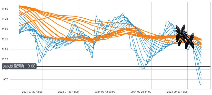 ➣ 70小时均线于(09-07 09:00: 10.69)形成【死叉】基于【死叉历史模型】预测死叉后最低波谷价格: 10.03, 死叉后最低价格9.54,已经下跌超出预测最低波谷价格, 预期反弹