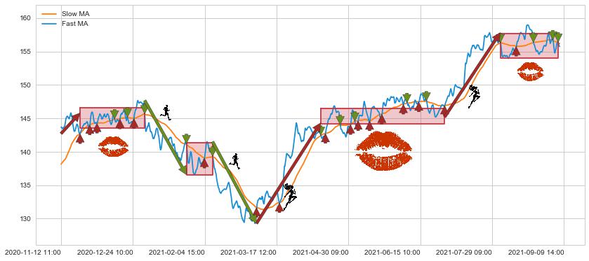 04-14 10:00至06-30 09:00 慢线与快线多次接触,存在上下穿越,有缠绕