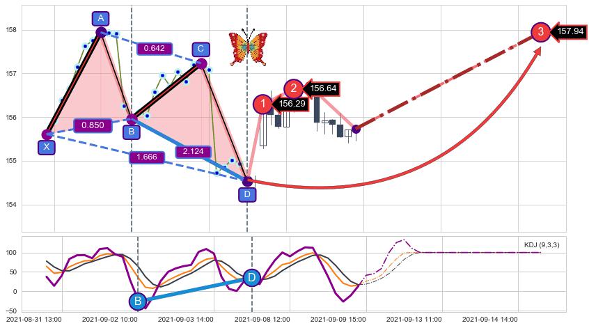 ➣ 已完成【蝴蝶】形态起点X: 08-31:12, 终点D: 09-07:13, 共27交易小时