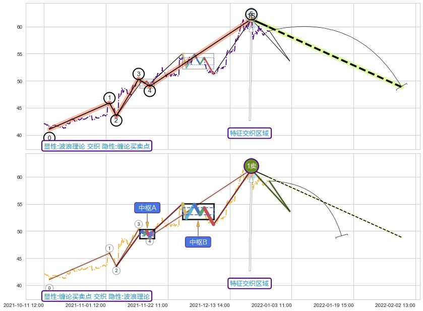 ➣ 缠论买卖点:上升缠中枢AB形成后猜想拐点1卖已到达,猜想后续持续下跌(均值回复)