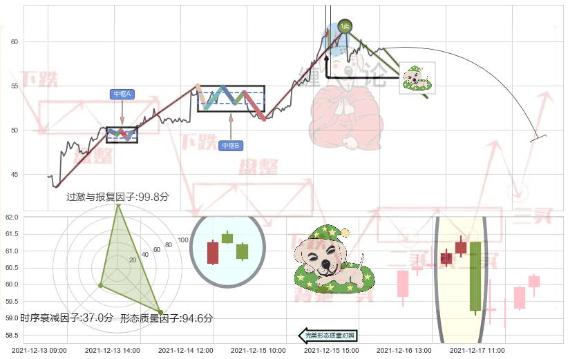 从2021-10-13 09:00至2021-12-21 09:00,共包含329个小时,阶段股价上涨35.74%,阶段股价变动位移路程比: 1 : 4,上涨趋势角度: 39.0