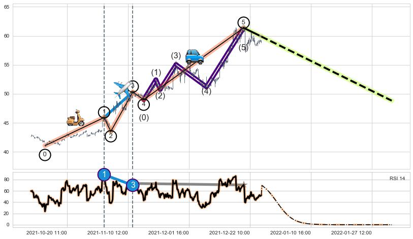 ➣ 【RSI】缠论走势出现【常规背离 & 反转信号】背离程度26.51%,背离夹角角度64.0˚,背离程度较大