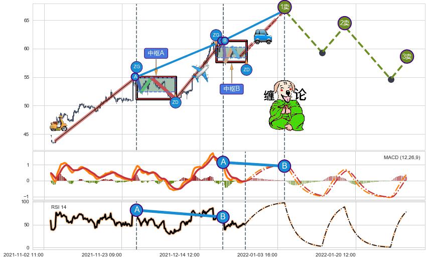 ➣ 缠论中枢点:上升缠中枢B突破后距离1卖距离较远,随后猜想后续持续拉升(趋势跟踪)