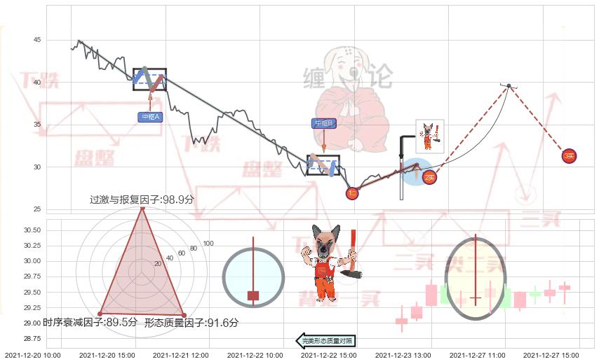 从2021-12-17 10:00至2021-12-27 15:00,共包含43个小时,阶段股价下跌-2.48%,阶段股价变动位移路程比: 1 : 13