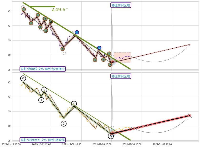 从2021-11-19 14:00至2021-12-21 14:00,共包含156个小时,阶段股价下跌-41.66%,阶段股价变动位移路程比: 1 : 4,下跌趋势角度: 49.6