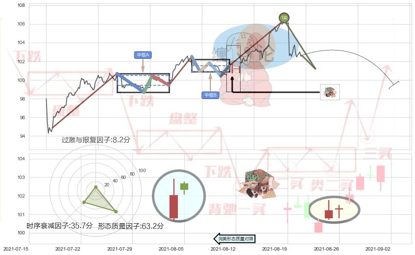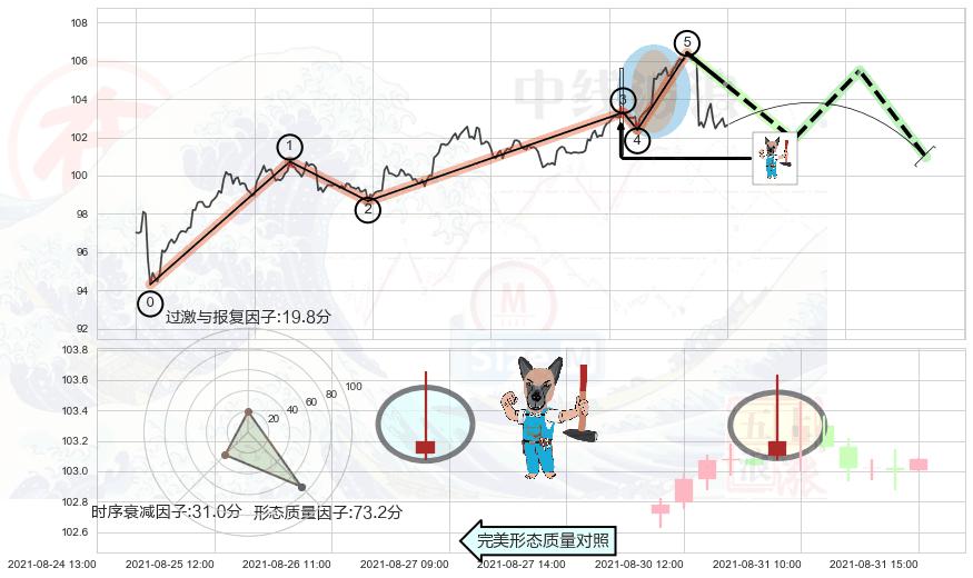 ➢ 🕰 价格走势在2021-08-30 09:00:00至2021-08-30 13:00:00期间形成低档五阳线,残存影响值:2.06