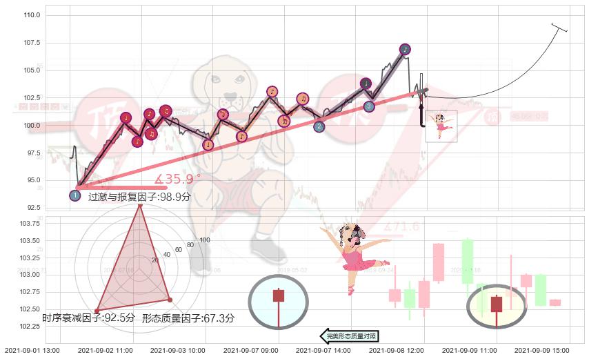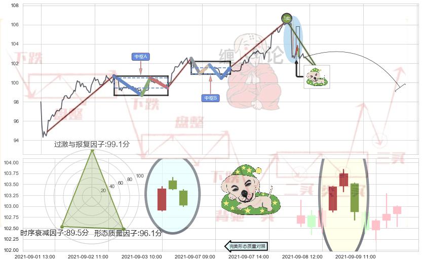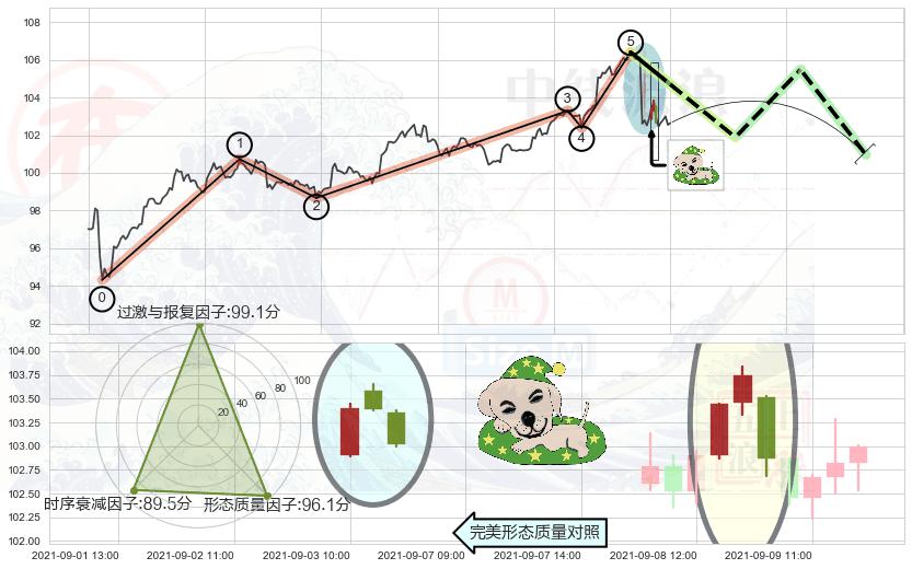 ➢ 🕰 价格走势在2021-09-08 13:00:00至2021-09-09 09:00:00期间形成黄昏之星(夜星),残存影响值:-3.51