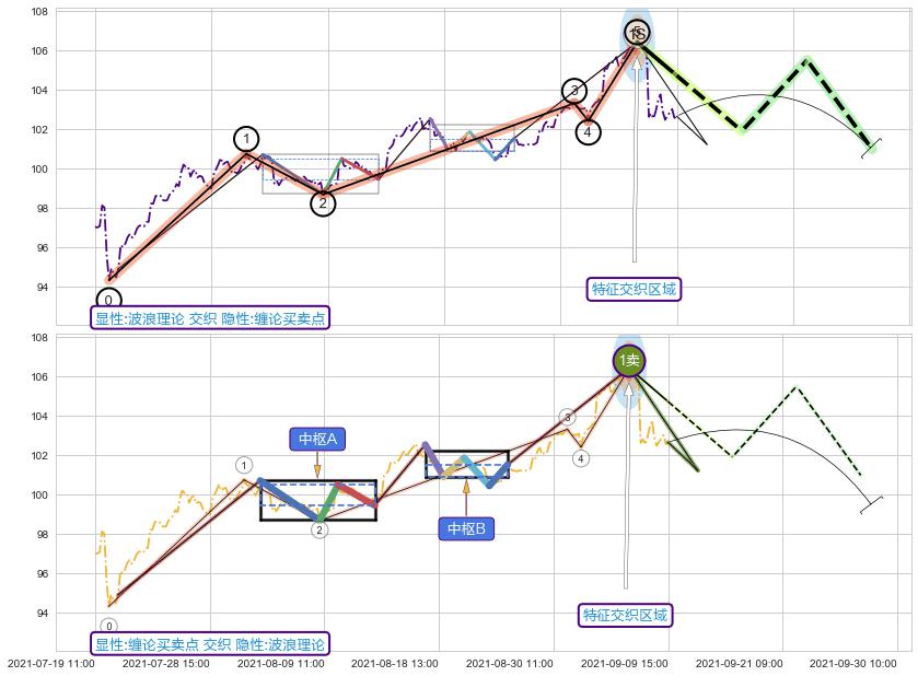 ➢ 缠论买卖点:上升缠中枢AB形成后猜想拐点1卖已到达,猜想后续持续下跌(均值回复)