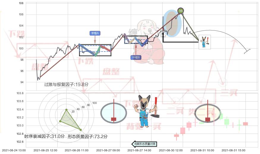 ➢ 🕰 价格走势在2021-08-31 09:00:00至2021-08-31 09:00:00期间形成看跌(高位倒锤头)流星线,残存影响值:-3.24