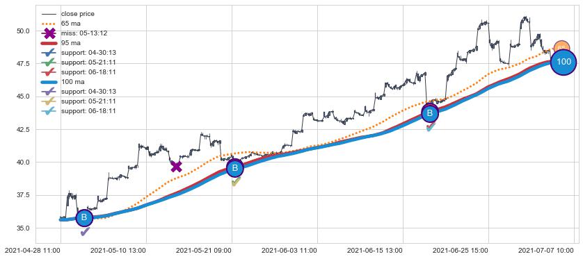 ➣ 95小时均线于(08-27 14:00: 41.33)形成【金叉】基于【金叉历史模型】预测金叉后最高波峰价格: 43.59, 金叉后最高价格45.88,已经上涨超出预测最高波峰价格, 预期回调