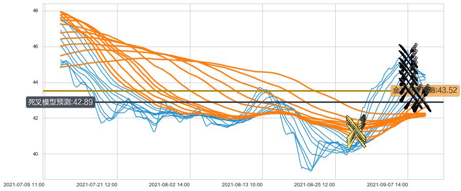 ➢ 13小时均线于(09-07 14:00: 45.45)形成【死叉】基于【死叉历史模型】预测死叉后最低波谷价格: 44.72, 死叉后最低价格42.80,已经下跌超出预测最低波谷价格, 预期反弹
