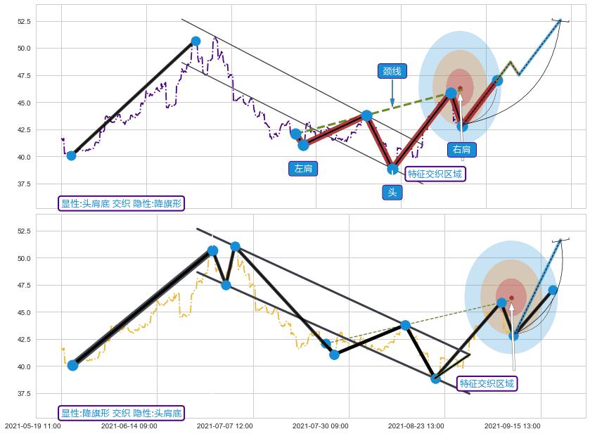➢ 头肩底与降旗形信号事件周期长度级别相同,同周期信号事件