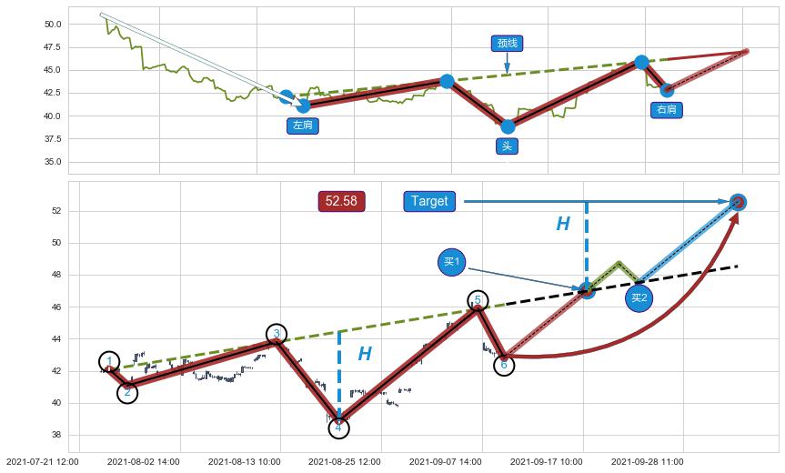 ➢ 头肩底与谐波蝴蝶信号事件周期长度级别相同,同周期信号事件