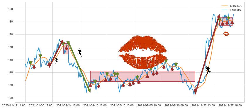 03-15 14:00至10-14 12:00 慢线与快线多次接触,存在上下穿越,有缠绕