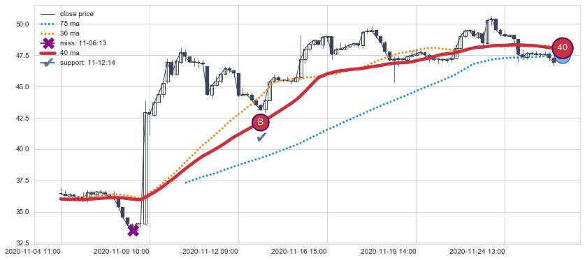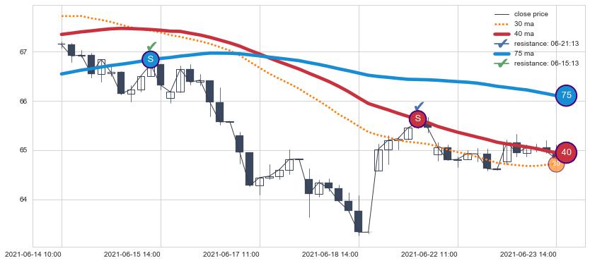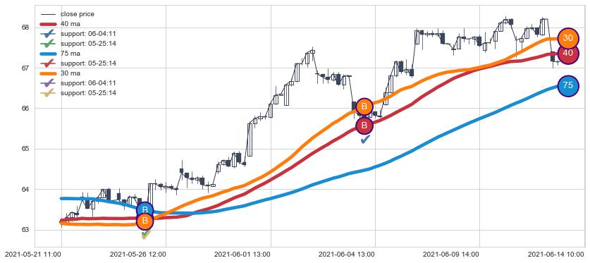 📝 多条均线形成死叉后走势最低价格达到: 68.30