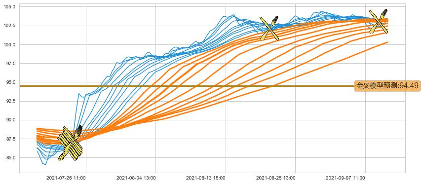 📈 多条均线基于【金叉历史模型】预测最高波峰价格的平均值: 94.49