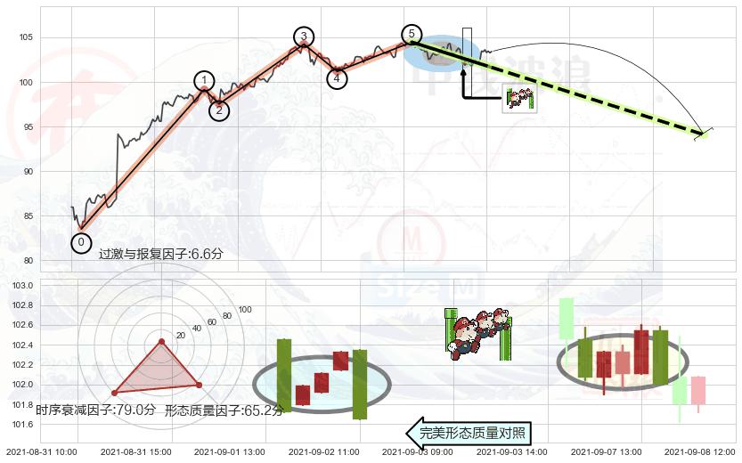 ➣ 下降三部曲(降势三鹤) + 波浪理论上涨浪:浪5回调拐点信号叠加后【信号初始稳固度】中等,【看空】信号叠加【可信度影响中等】