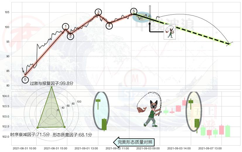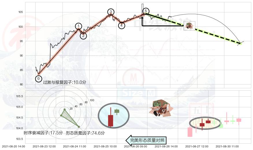 ➢ 🕰 价格走势在2021-09-03 14:00:00至2021-09-07 09:00:00期间形成吊颈线(上吊线),残存影响值:-6.21