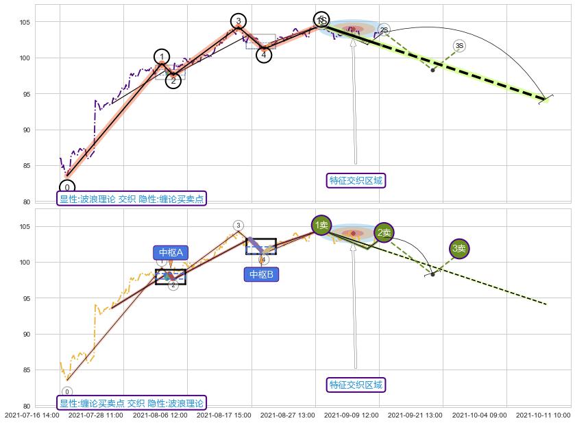 ➣ 缠论买卖点:猜想2卖持续蓄力下跌至3卖 → 下跌 → 风险信号 → 小趋势跟踪