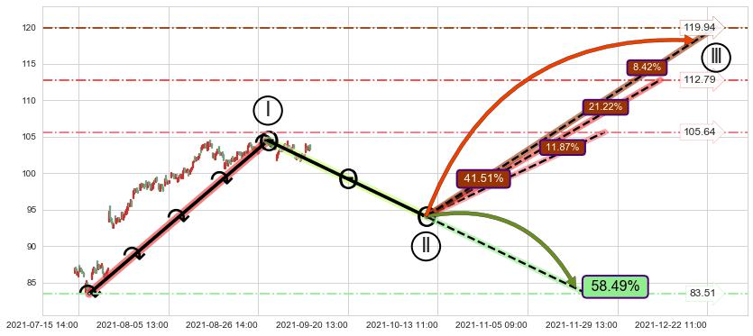 ➢ 循环浪继续向上【最高】位置(12-23:14, 119.94),匹配聚类样本比例20.29%, 可能性概率8.42%