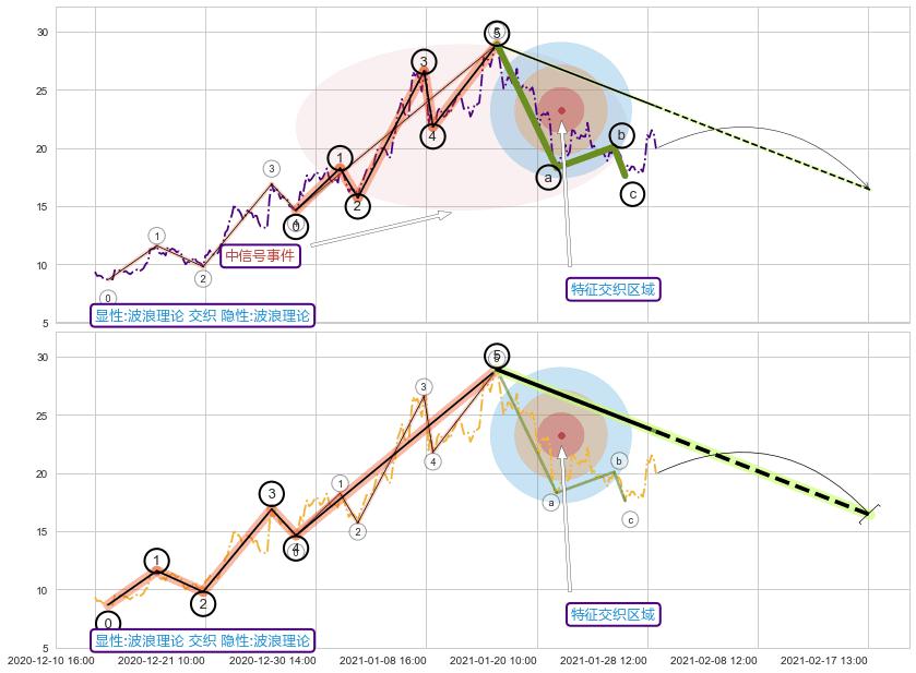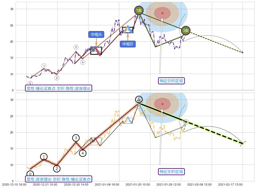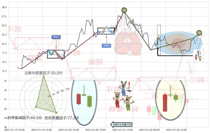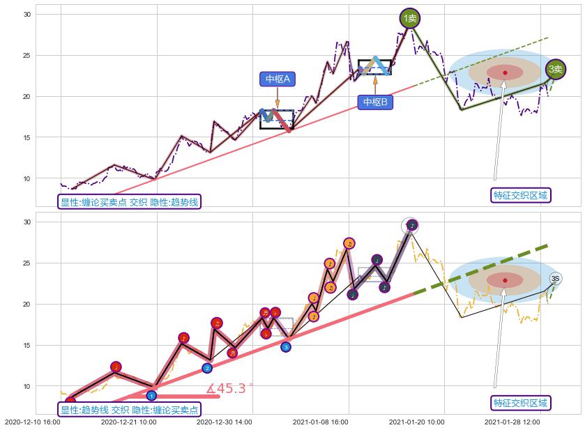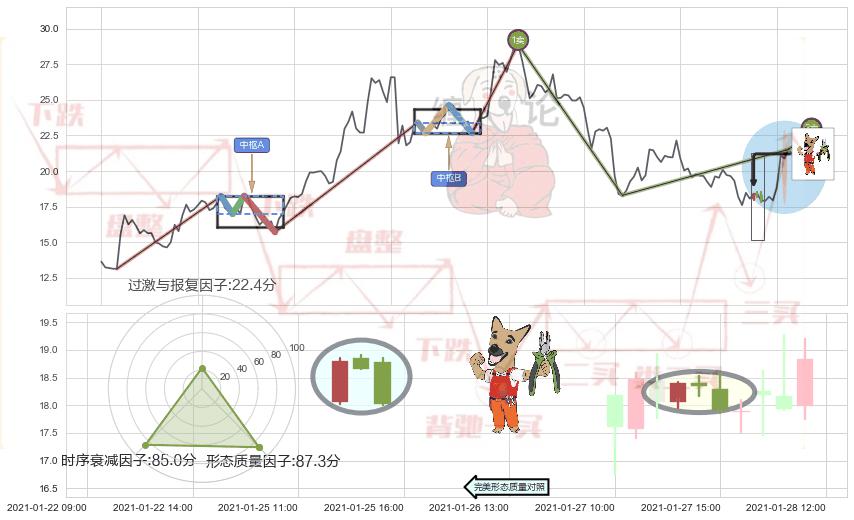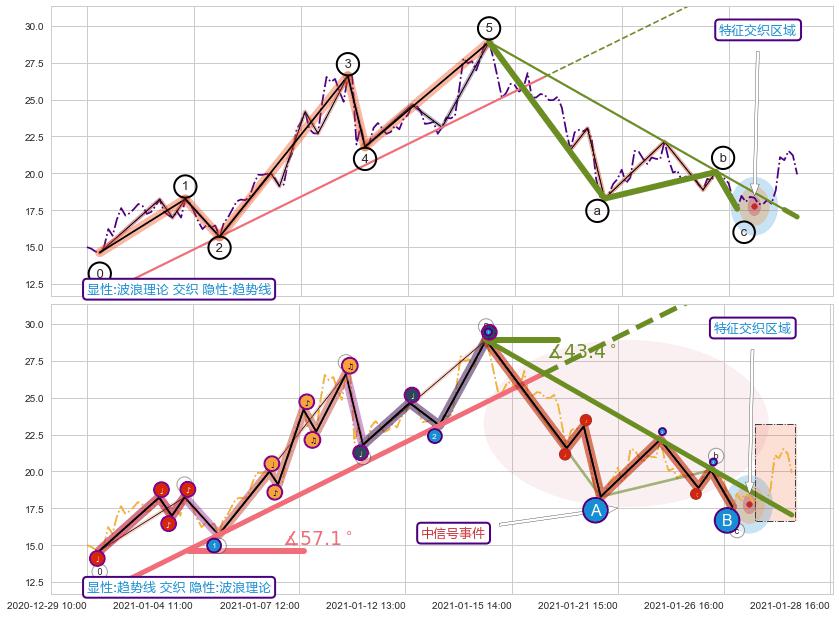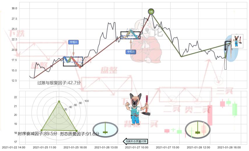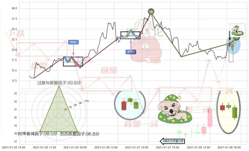 从2021-01-27 10:00至2021-01-28 16:00,共包含15个小时,阶段股价上涨13.67%,阶段股价变动位移路程比: 1 : 3