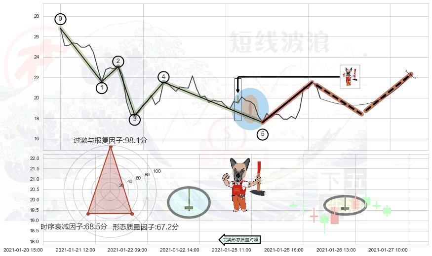 ➢ 🕰 价格走势在2021-01-27 10:00:00至2021-01-27 10:00:00期间形成单针探底(定海神针),残存影响值:5.42