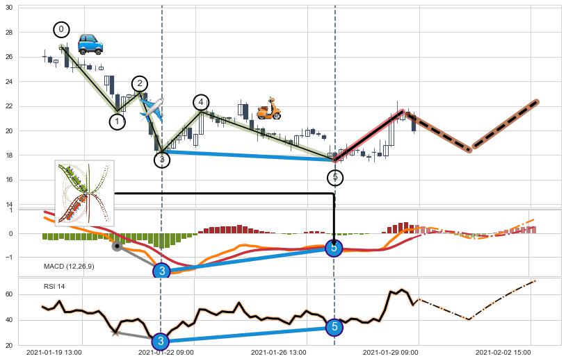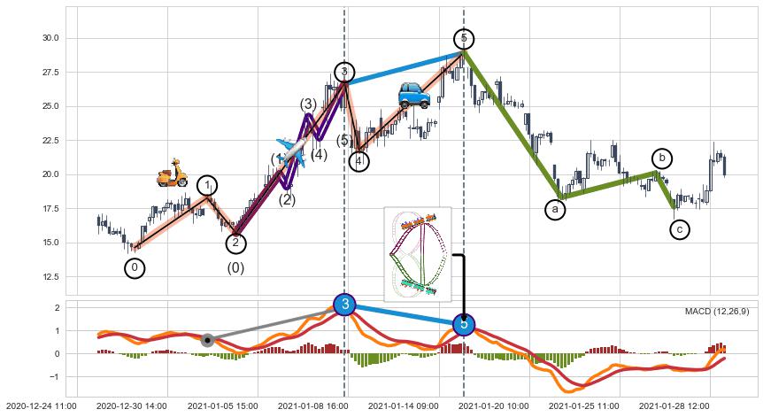 ➣ 波浪理论:猜想达到c点后小回调终止反转上涨 → 上涨 → 【拐点】临近 → 阶段均值回复结束后继续大周期趋势跟踪