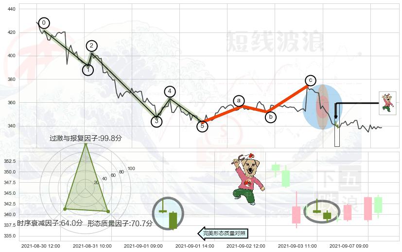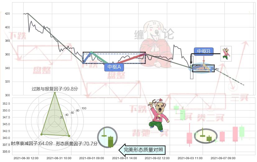 ♘ 在最后的下跌阶段2021-08-03 10:00至2021-09-08 14:00,存在 持续未破位的阻力位 ,阻力价格357.72,可信任强度86.99%,其距离最后价格338.46相差 +5.69%