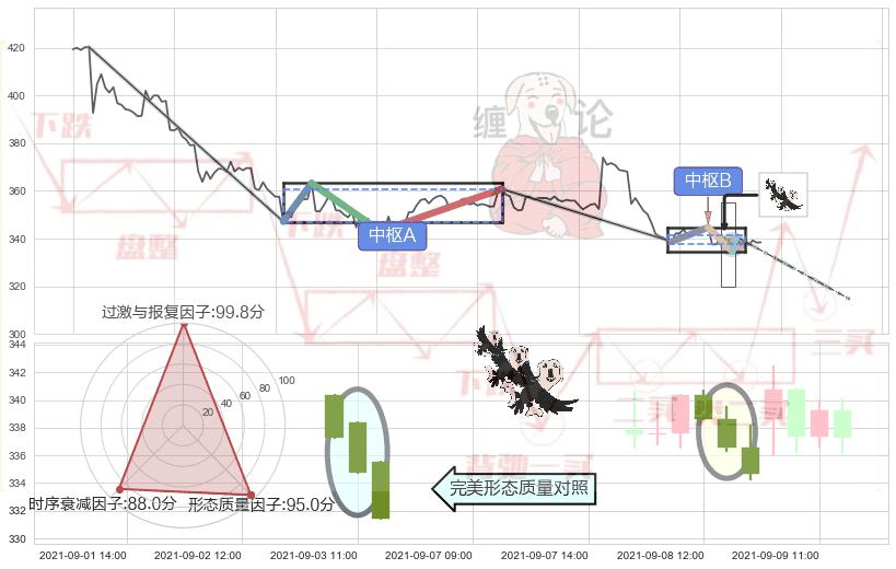 从2021-09-01 09:00至2021-09-09 15:00,共包含40个小时,阶段股价下跌-9.81%,阶段股价变动位移路程比: 1 : 2