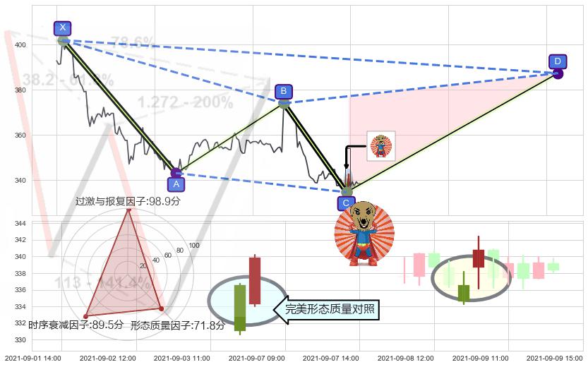 ➣ BC回撤位置在AB的127.3%,符合形态要求