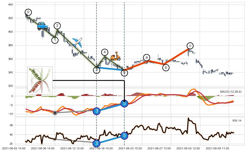 ➣ 波浪理论:猜想达到c点后小回调终止反转上涨 → 上涨 → 【拐点】临近 → 阶段均值回复结束后继续大周期趋势跟踪