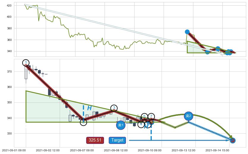 ➣ 预测:2021-09-27 10:00,【试探阻力】稳定目前下跌趋势的前提下,预测价格:327.92