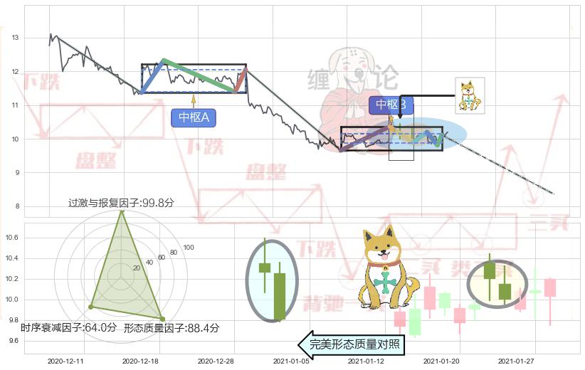 从2020-12-08 10:00至2021-01-15 10:00,共包含207个小时,阶段股价下跌-27.04%,阶段股价变动位移路程比: 1 : 6,下跌趋势角度: 31.5