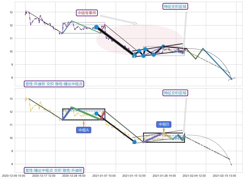 从2020-12-14 11:00至2020-12-23 12:00,共包含58个小时,阶段股价下跌-8.58%,阶段股价变动位移路程比: 1 : 4