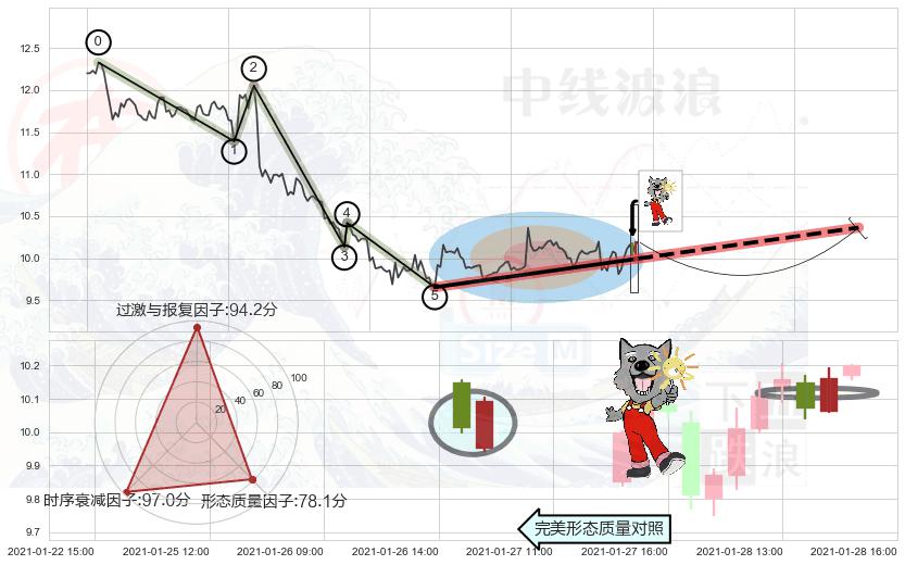➢ 🕰 价格走势在2021-01-28 09:00:00至2021-01-28 11:00:00期间形成早晨之星(黎明之星),残存影响值:7.34