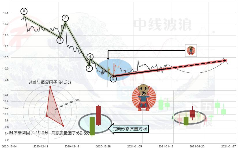 ➢ 🕰 价格走势在2021-01-20 10:00:00至2021-01-20 14:00:00期间形成低档五阳线,残存影响值:0.93