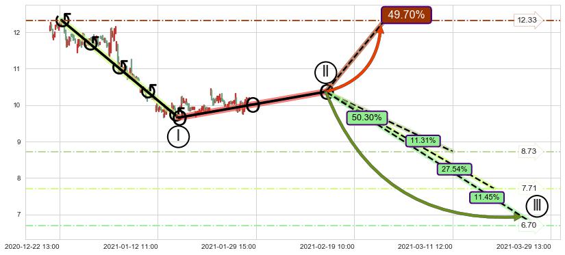 ➢ 【仅预测突破】最后价格:10.20与预测突破价格:10.02→【空间临近】后续最小【整理】第一目标价格→(02-12:13: 7.85 )