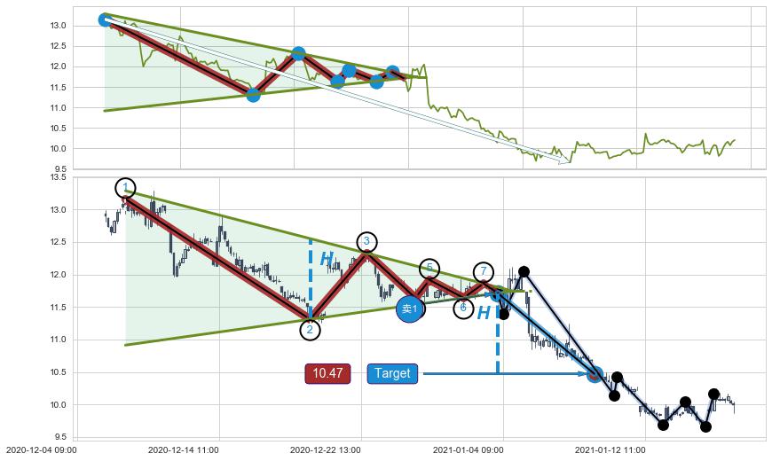 ➣ 最小中继整理跌幅→𝐇: 2.172 (𝐇旗杆的长度:旗杆起点→顶点)