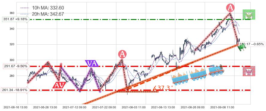 🍖 长线趋势跟踪组合短线均值回复[强支撑信号]2021-07-08 09:00-2021-09-09 13:00上升趋势依然成立(上涨趋势跟踪依然可行),短线价格略微下行回调(均值回复猜想),即将接近趋势提供的未破位的支撑价格:320.17。