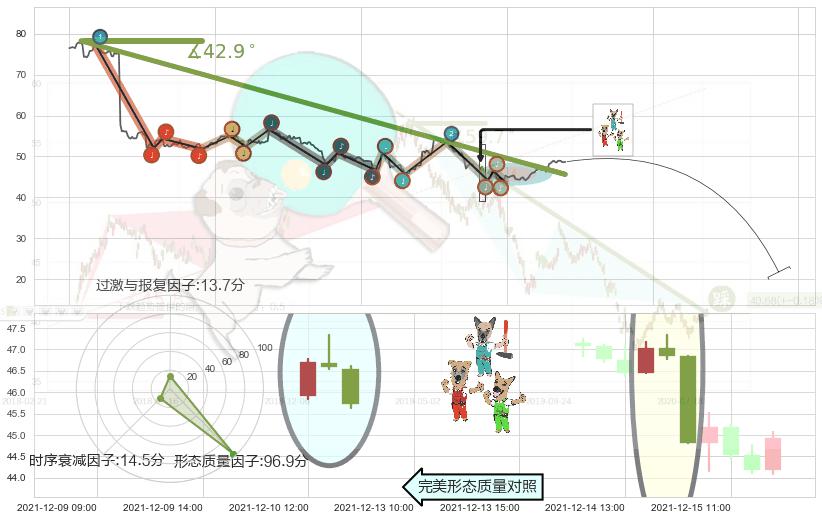 🦴 长线均值回复组合短线趋势跟踪[强阻力信号]2021-10-15 13:00-2021-12-22 09:00下跌趋势依然成立(下跌趋势跟踪依然存在),短线价格略微上行反弹(均值回复猜想),即将接近下跌趋势提供的未破位阻力价格:45.62。