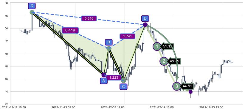 ➣ BC回撤位置在AB的122.3%,符合形态要求