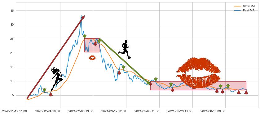 02-12 15:00至04-23 12:00 慢线与快线呈空头排列, 慢线与快线接触少,无缠绕
