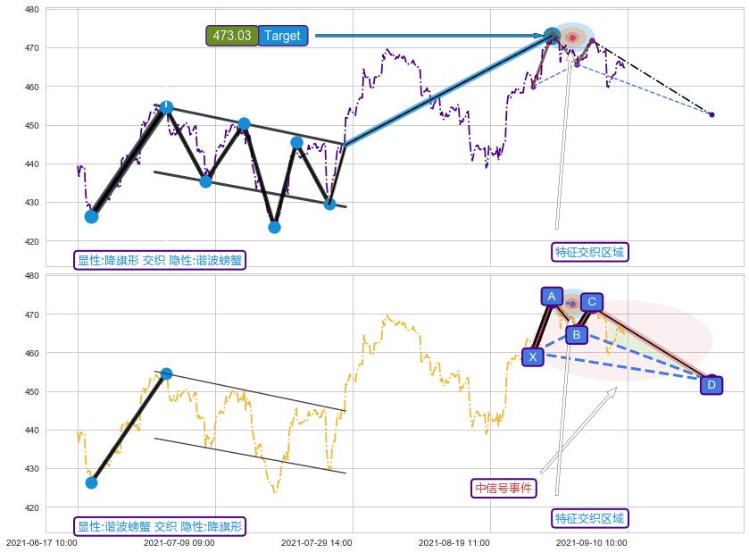 ➢ 降旗形属【短级别信号事件】谐波鲨鱼属【长级别信号事件】长短周期组合信号事件, 短长事件长度比33.88%