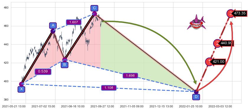 ➢ 谐波鲨鱼:猜想c点拉升击穿越过b点后泄力性下沉下跌(均值回复)