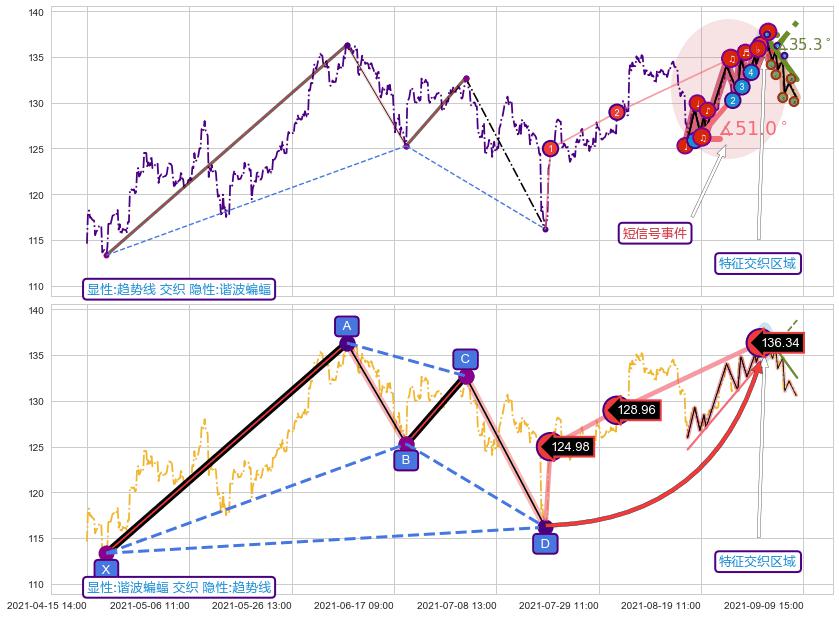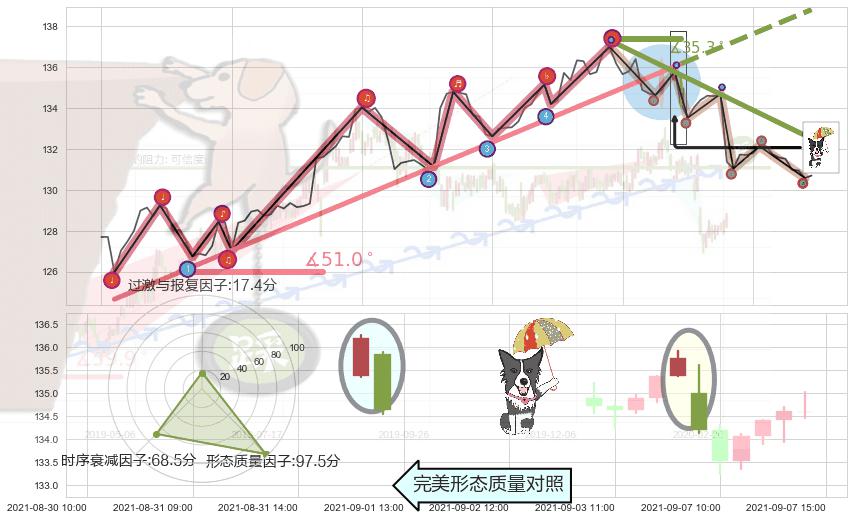 ➣ 2021-08-17 11:00-2021-09-07 09:00上升趋势存在反转[风险],其原上升趋势的支撑位(138.82)已破位[强阻力信号],原上升趋势角度: 51.0˚