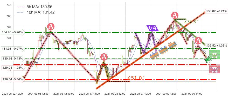 ➢ 预测:2021-09-10 13:00,【小幅反弹】稳定目前下跌趋势的前提下,预测价格:131.75